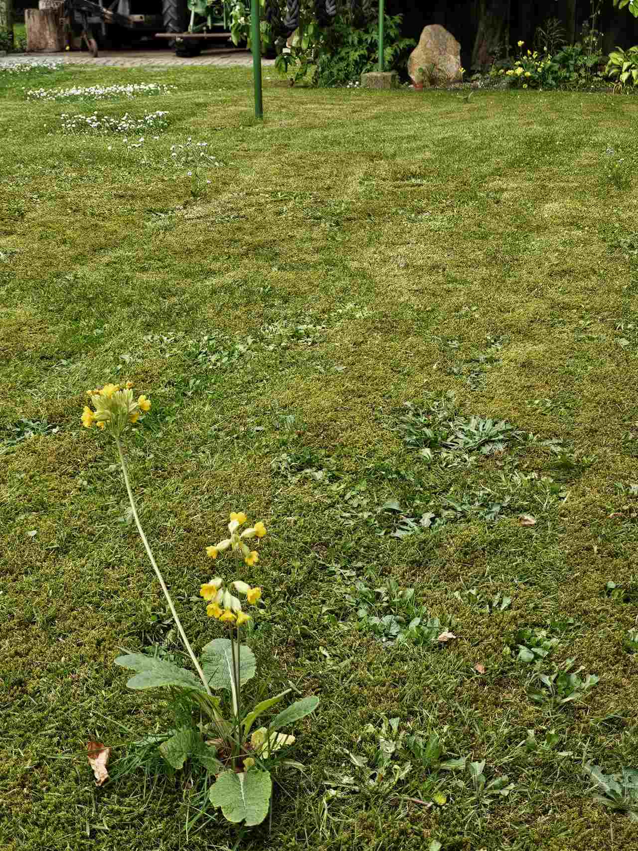 Schlüsselblumen, Vergissmeinnicht und jede Menge Gänseblümcheninseln bleiben auf dem Moosrasen stehen