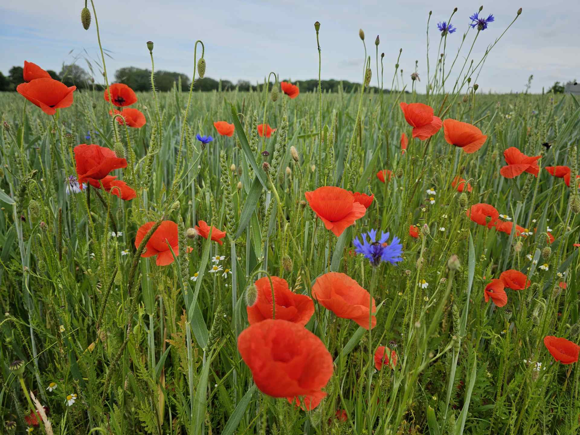 Das Getreide steht gut und die Beikräuter Mohn und Kornblumen machen sich Super!
