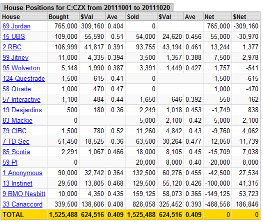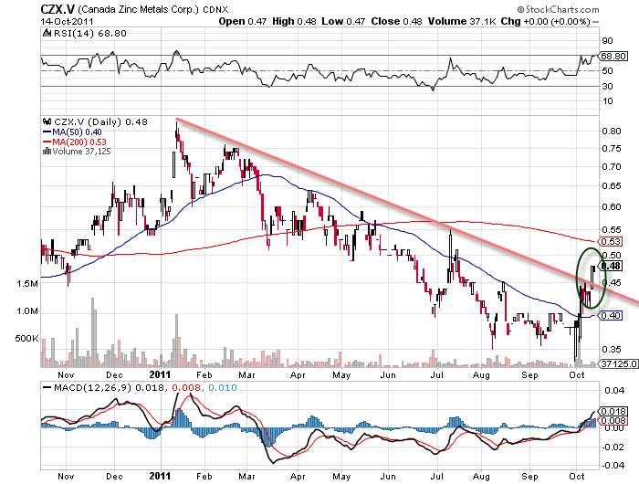 Im Großen und Ganzen hat sich die Aktie in den letzten 2,5 Monaten Regression an der TSX Venture Exchange (CVE). Auf den letzten Tagen des September die Aktie sogar geschlagen einem Zwei-Jahres-Tief von $ 0,335. Seitdem hat jedoch eine positive Veränderung eingetreten ist. CZX hat 17% bewegt sich innerhalb der letzten zwei Sitzungen.
