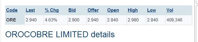 ORE 2.850 2.15% 2.810 2.870 2.780 2.850 2.755 588,777