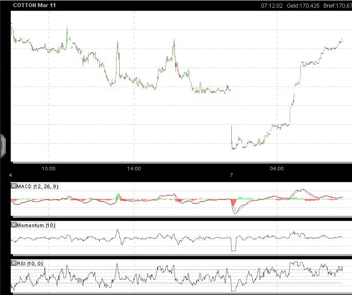 Was mir gut gefällt ist, so wie hier in einigen Artikeln zu lesen war, das sich endlich auch Marktregulierer wegen der viel zu hohen Preise eingeschaltet haben. Das ist wie beim Öl, eigentlich müsste das ständig teuerer werden, aber wem nützt der höchste Preis, wenn dadurch die Nachfrage letztlich blockiert wird und verstärkt nach Ausweichmöchglichkeiten gesucht wird. Bei Baumwolle sollte das kein Problem darstellen, ein weiterer Punkt um wieder auf normalere Preise hier zu setzen.
