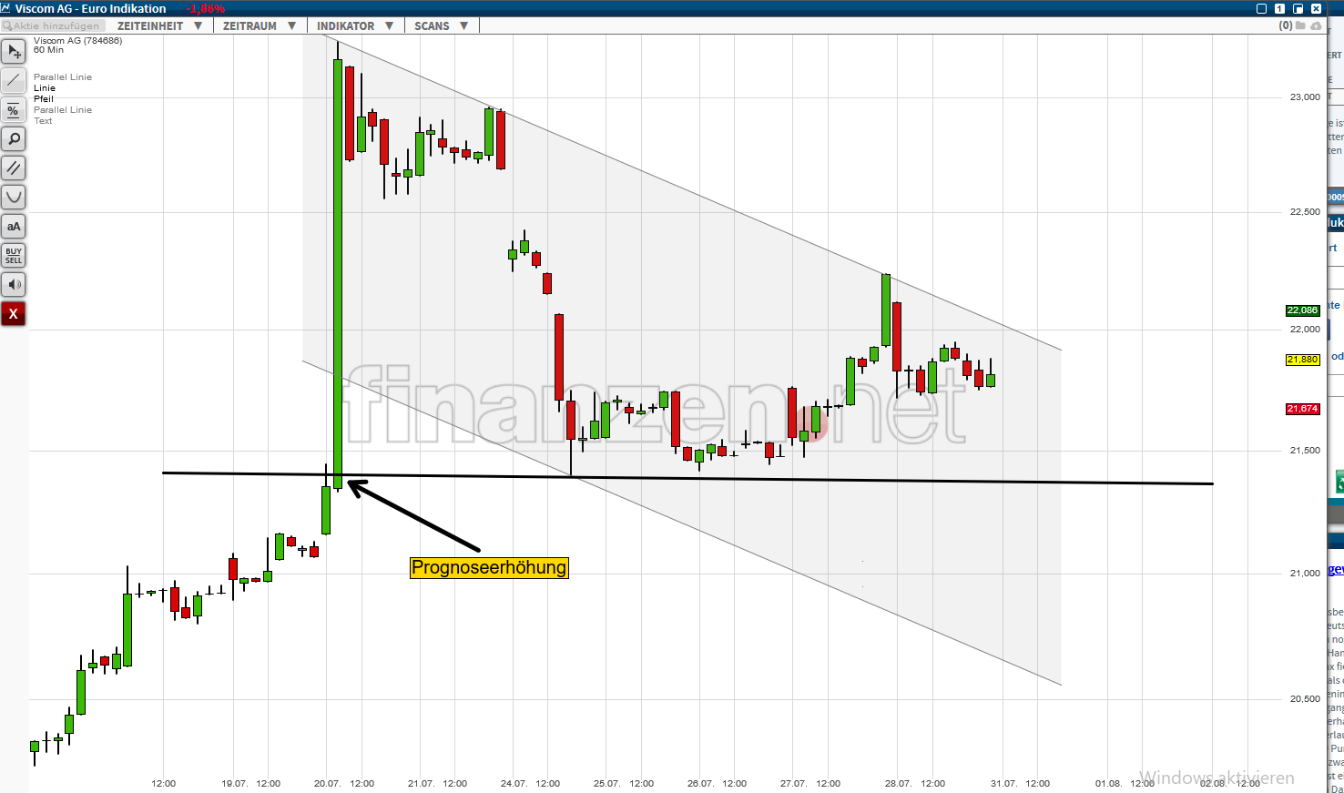 Der Gesamtmarkt kommt im Moment nicht voran. Eine größere Korrektur dort und bei Viscom können wir ein Aufholen des Kurses vergessen.