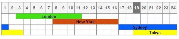 Sydney: 17 Uhr bis 2 Uhr amerikanischer Ostküstenzeit (ca. 4 % des gesamten Devisenvolumens)