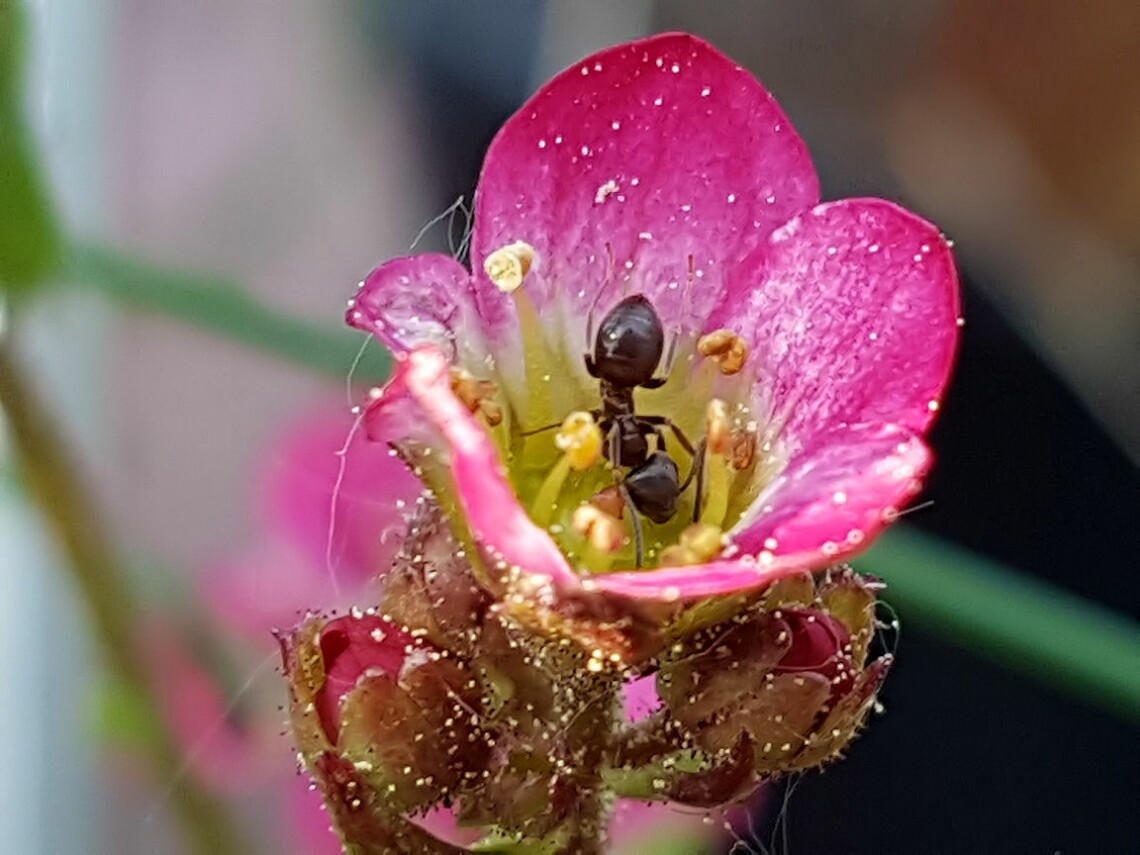 Die Ameisen an den kleinen Blüten sind schon interessant, ich beobachte das seit Tagen, es sind nur 4 oder 5, aber die sind ständig am 'beißen'