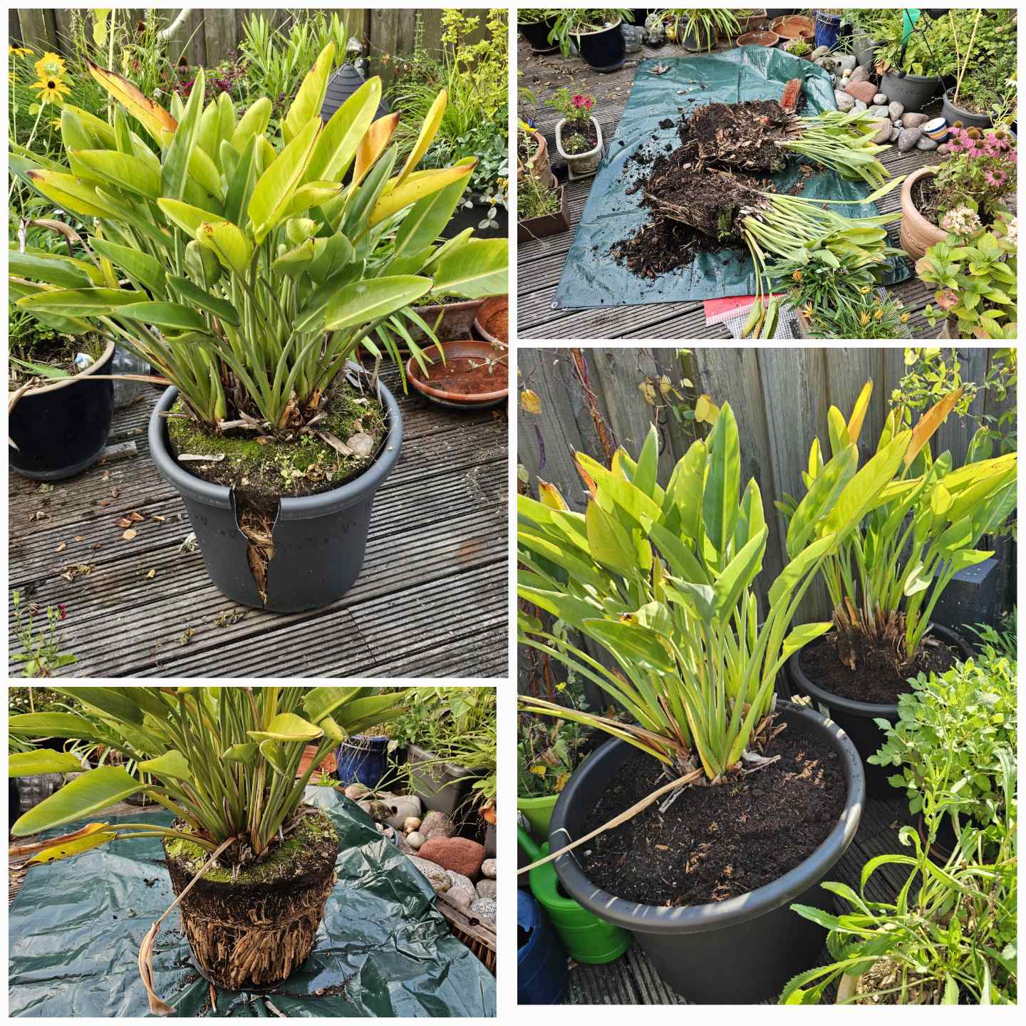 Morgen werde ich wohl doch mal versuchen, meine Strelitzie zu teilen und umzutopfen. Heißt erst Platz schaffen und aus dem Topf ausbrechen. Bin schon gespannt, ob ich dann zwei riesige Töpfe wie jetzt auch brauche oder eine Nummer kleiner nehmen kann. Die 60 Klio sind schon immer recht unhandlich.