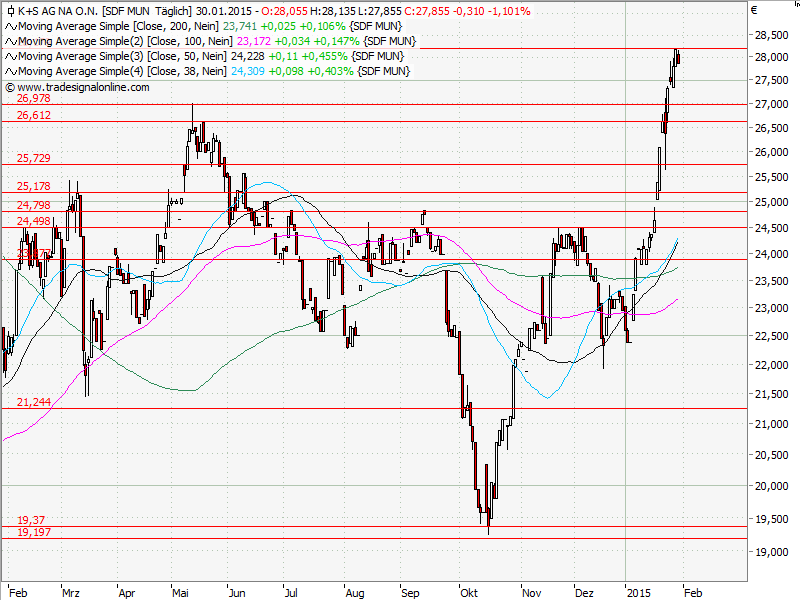 Und dann bin ich noch auf den Chart von K+S gestoßen, die ich vor dem großen Absturz auf 19 € mit Verlust verkauft habe und g o t t f r o h war die loszuhaben um jetzt zu sehen wie viel höher sie steht und da ist mir auch k l a r geworden, dass das Traden von Aktien i n e f f e k t i v ist, denn Aktien brauchen ihre Z e i t um sich nach einem Absturz zu erholen und als Trader ist man da v i e l zu kurzfristig unterwegs, denn man muss mindestens 2 bis 3 Monate einkalkulieren bis man dann wirklich so eine g e i l e Rendite von +50% wie jetzt bei K+S machen kann und da ist man als Trader l ä n g s t draußen, wo man allein schon durch die täglichen Zinsbelastungen nervös gemacht wird und nach ein paar Prozent Gewinn wieder verkauft, was die Sache absolut ineffektiv macht !!!