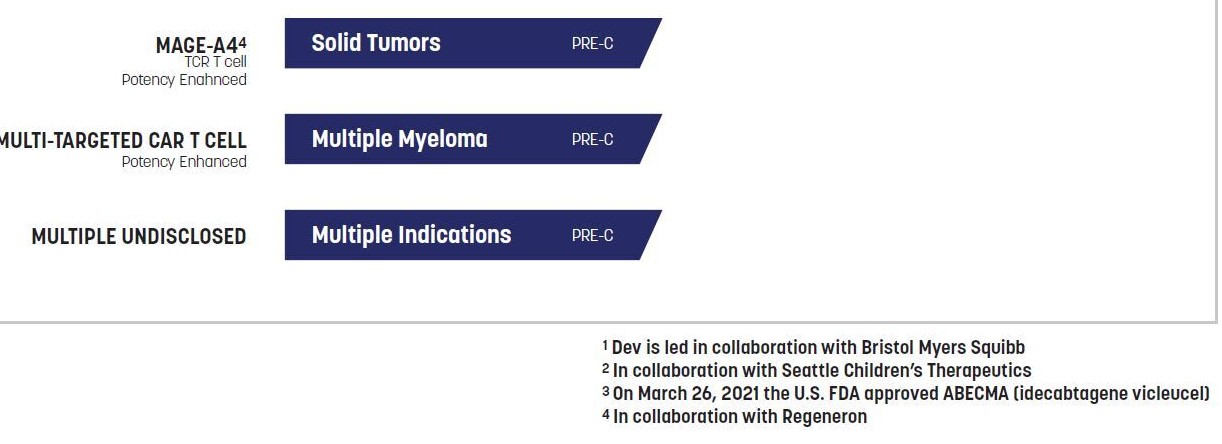 Together with our partner Regeneron we are advancing an engineered TCR therapy targeting MAGE-A4 through preclinical studies. We believe our MAGE-A4 program has the potential to address the