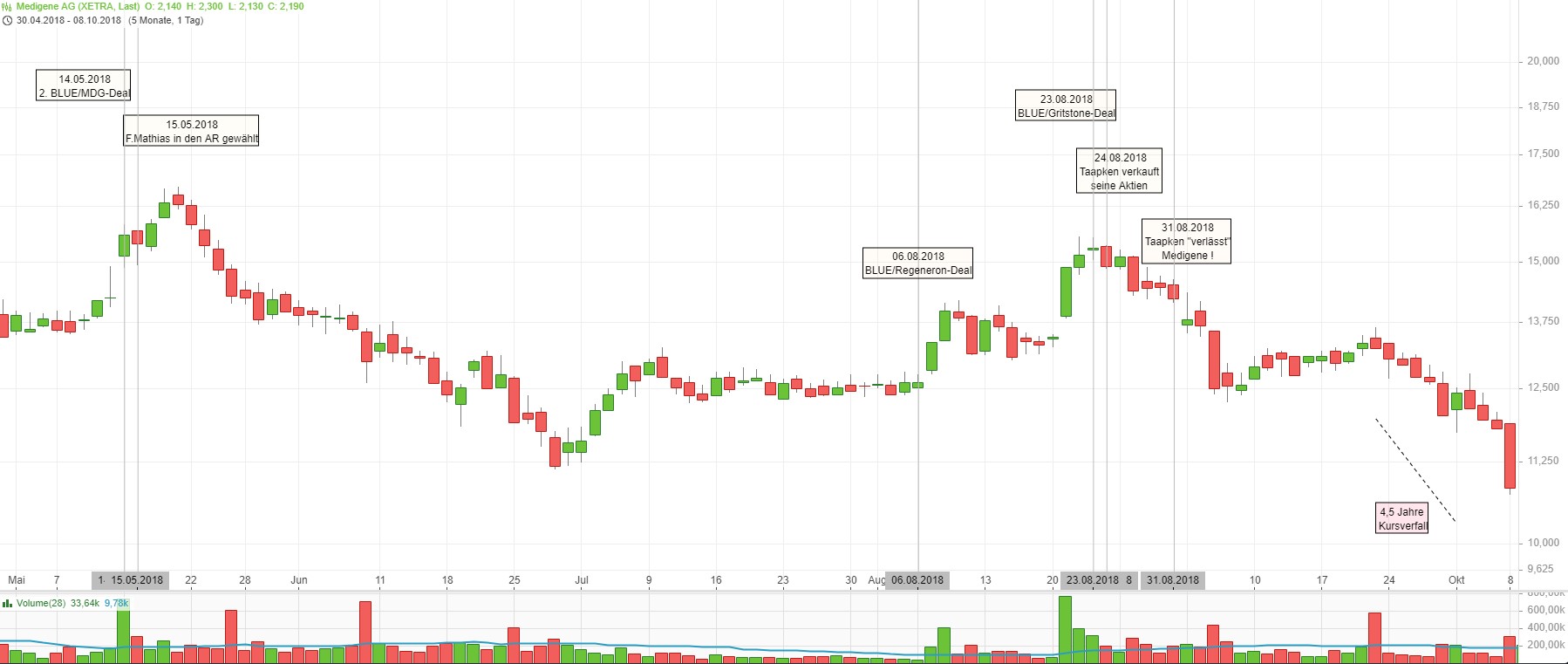 (Immerhin schien es ja mMn einen zeitlichen Zusammenhang zu geben mit der ursprünglichen BLUE/Regeneron-Kooperation und dem MDG-Kursverfall seit Mitte 2018).