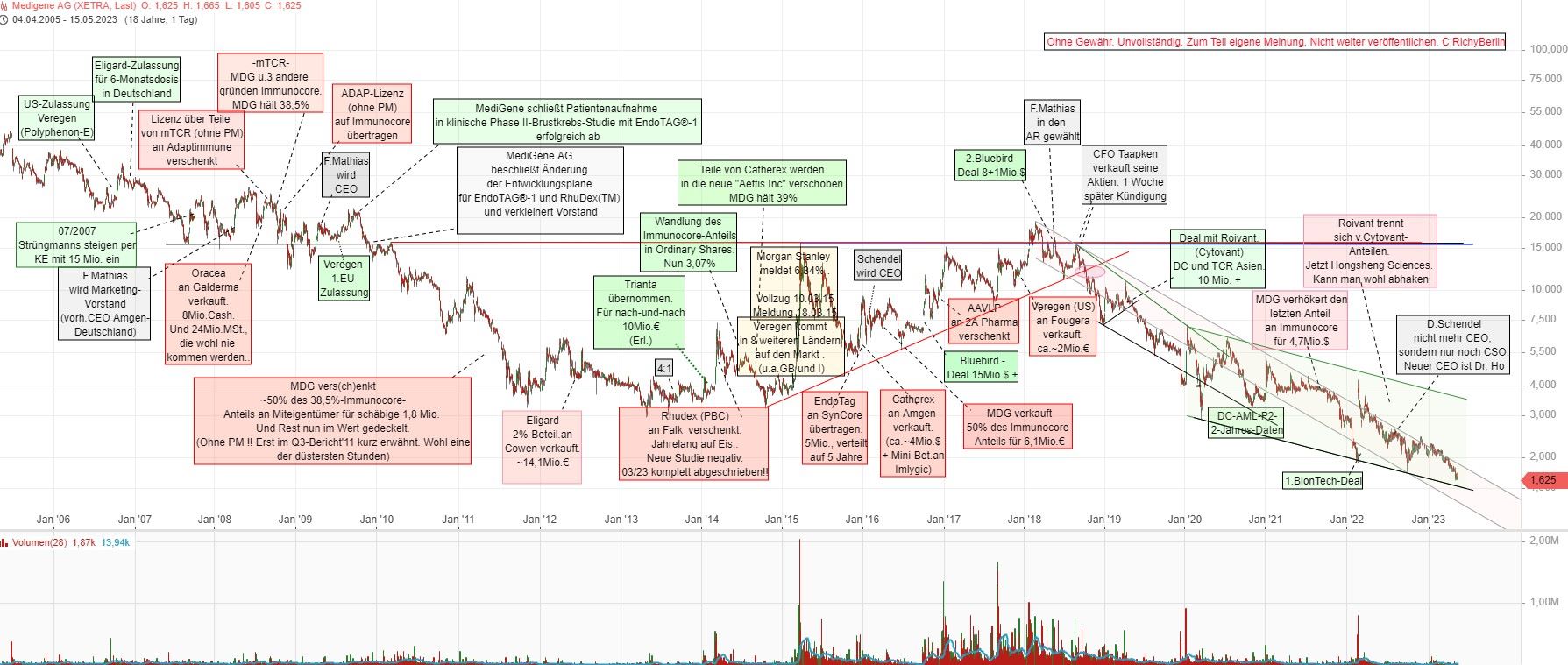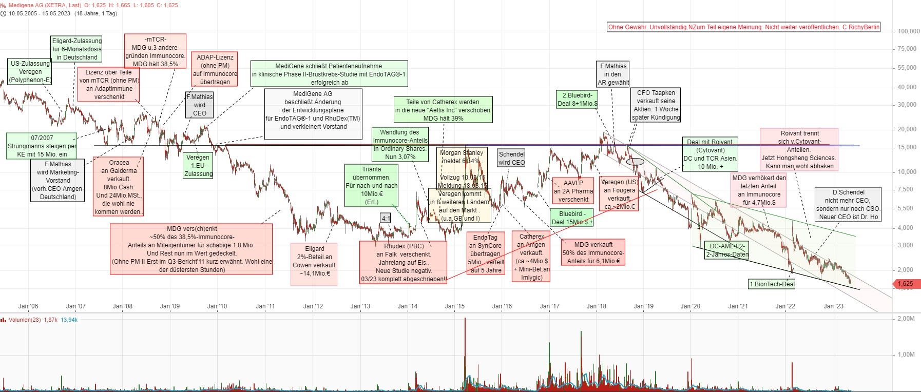 MDG dreht sich seit 25 Jahren im eigenen Saft und es wird immer eine neue Sau durchs Dorf getrieben. Entweder wird das Produkt nichts (Endotag, Rhudex) oder man versagt bei den Verträgen (Eligard, Immunocore, Adaptimmune) oder bei der Auswahl der Leadprodukte. Misery pulls misery.