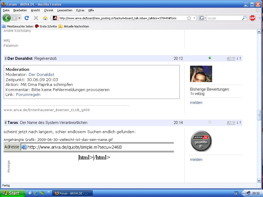 geschrieben, sind solche Tests, die von der Betreiber-Seite ohnehin ROUTINE-mäßig durchgeführt werden, auch von Seiten derer USERS nötig, "um zwischen denen von verschwundenen oder in's Groteske verzerrten CURSEN geplagten BÖRSIANERN und denen von verschwundenen oder verzerrten BILDERN oder LOGOS geplagten TALKERN ein GEMEINSAMES Vorgehen gegen diese systemischen Mängel vorbereiten zu können".