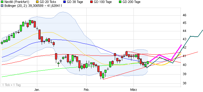 Der Kurs ist genau am Kreuzwiderstand, bei etwas über 41 €, abgeprallt. Dein Szenario ist z. Zt. eine Punktlandung. Unter 40 € werde ich zukaufen. Weiter so.