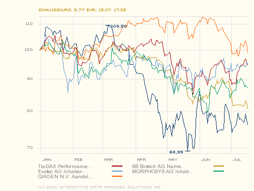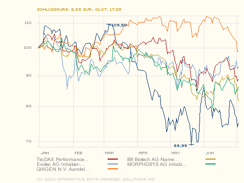 sozusagen grobe HJ Bilanz - und - man stellt es schnell fest - klar ist MDG größter Verlierer, aber mit keinem Wert und auch nicht mit dem TecDax sind aktuell Gewinne in 2010 zu verzeichnen..