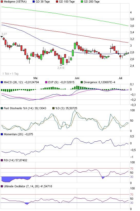 und gleichzeitig bleibt die Marktkapitalisierung schön konstant bei 100 Mio...und Medigene hat nur noch ca. 8,5 Mio Euro in der Kasse;