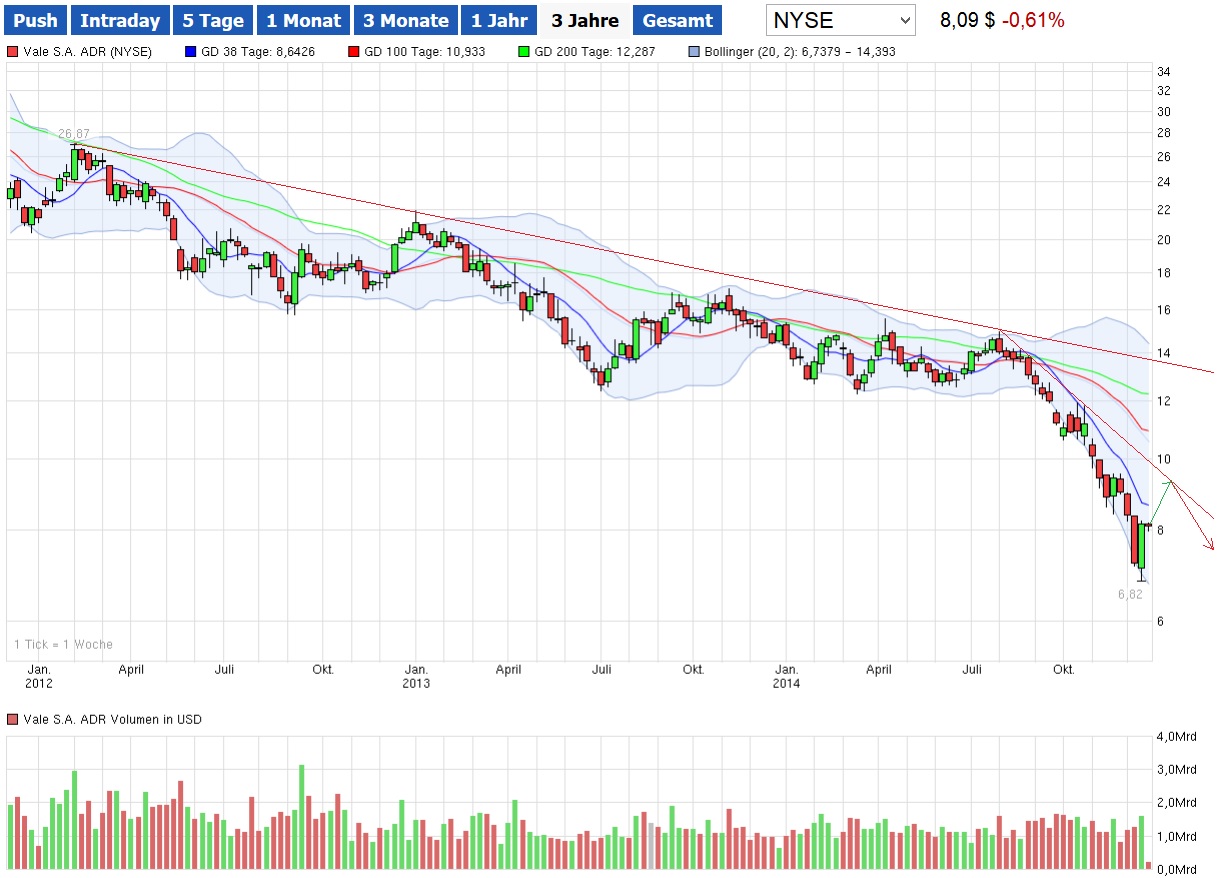 wenn ich mir den XXl Chart so anschaue hat die Aktie immer ihre Schwächephasen gehabt. Diese Aktien will im Moment keiner . Und wenn diese Aktien anziehen wollen plötzlich alle welche haben. Angebot und Nachfrage halt. Die Vale ist im Moment so günstig wie seid 2004 nicht mehr....