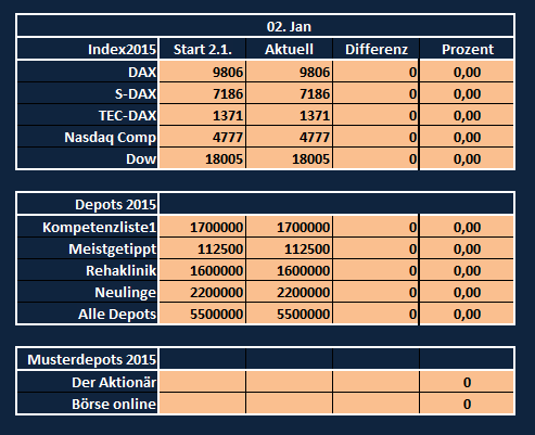 Startkurs Immunogen sollte nicht 6,02€ sein, sondern eher um 5,10€ wenn Du Börsenplatz F heranziehst...am 30.12.2014 zwar keine Umsätze leider dort, aber Kursfeststellung war 5,104...die Kurse am Vortag eher tiefer!