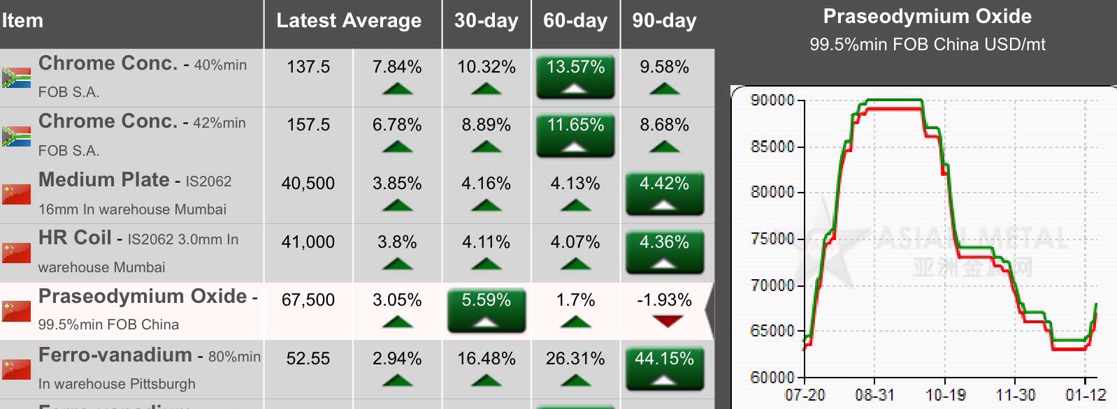 ...Mitte Dezember 2017 folgte jedoch ein zweiter Preisauftrieb, bei dem der Neodympreis um 19% auf über 47,5 US$/kg anstieg. Der Preisanstieg im Dezember hat sich bis ins Jahr 2018 fortgesetzt, wobei die Preise für Neodym in den ersten zehn Tagen des Monats Januar um weitere 14% gestiegen sind...