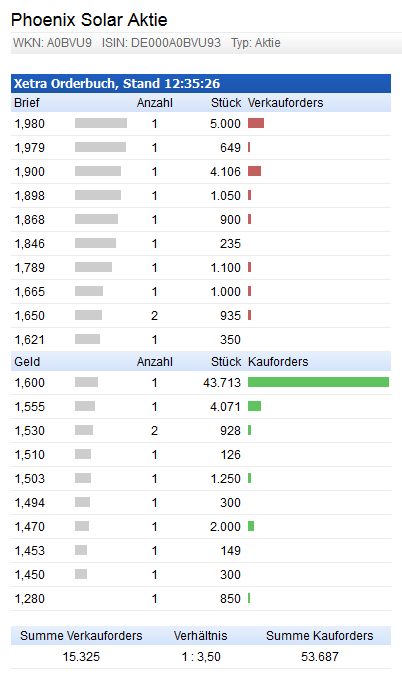 Bei 1,45 in Xetra nun 10.000 Stk gesucht, außerbörsl. sogar 25.000 - das könnten nun Insider sein, aber die sehen dann da auch nur erstmal den Boden: hier mit 3 Euro Kursziel, dh schneller Kursverdopplung Leute zu täuschen, ich weiß nicht...