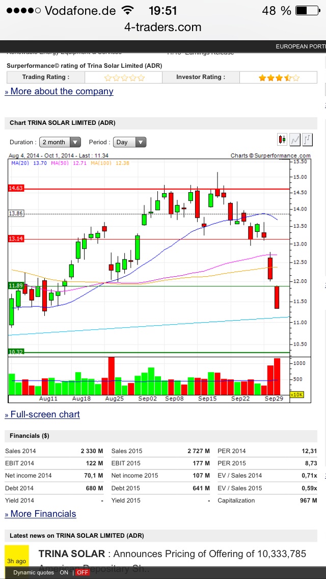 Trina braucht Kohle für neue Kapazitäten
