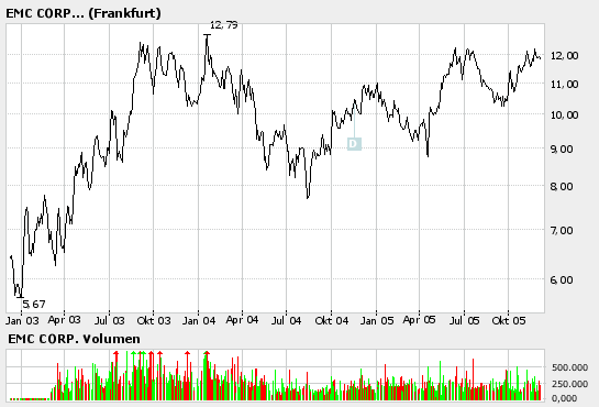 Schau Dir doch den 3-Jahreschart an! Die 13€ sind immer wieder ein nicht erreichbares Ziel für EMC. Hoffentlich klappt's noch in den nächsten 5 Jahren!