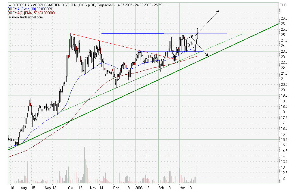 eines Jahres in etwa verdoppelt. Für das Jahr 2006 strebt Biotest nach dem