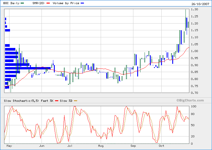 Thursday, 11 October 2007 to $1.17 at the time of writing.