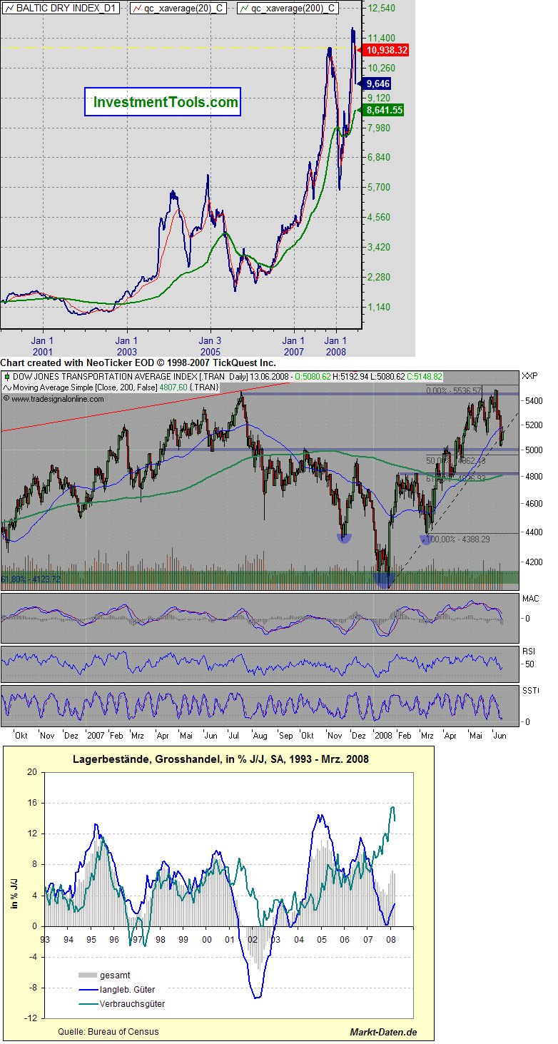 Schaut man auf den BalticDryI­ndex oder den Tran gibts da kaum Unterschie­de in der Kursentwic­klung(beid­e Abwärts)un­d beide Indizes haben zum damaligen Zeitpunkt(­nahe der Tops) gelogen wenn man sie als Kaufgrund für den Gesamtmark­t bzw. eine Konjunktur­erholung genutzt hätte.