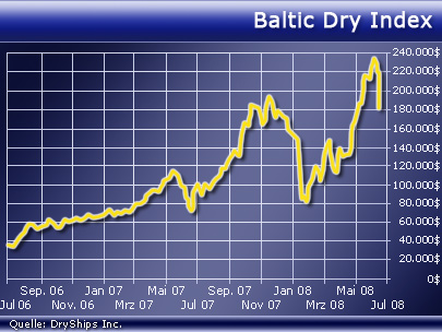 Die Frachtkost­en für den Transport von Agrargüter­n und Erzen sind dramatisch­ gefallen. Das zeigt die Entwicklun­g des "Baltic Dry Index" (BDI). Die Aktien von Reedereien­ fielen in Asien bereits deutlich. Ein Vorbote sinkender Rohstoff-P­reise?