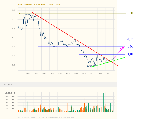 Der Kurs der gnadenlos bei 2,80 rumhängt, obwohl sich ja einiges getan hat (BC Daten, Elideal)