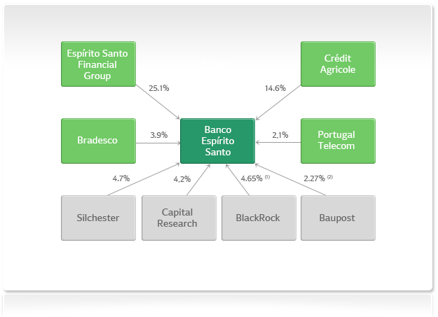 The consolidated number ordinary shares of BES held by ESFG, following the successful completion of the Bank’s EUR 1.045 billion right issue, rose to 1,409,319,449 shares, equivalent to a 25.1% stake in BES.
