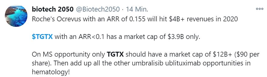 sieht gut aus, Zulassung steht wohl nichts mehr im Wege. 1Mio Amerikaner können sich freuen wenn die Infusion zugelassenen ist.News https://ir.tgtherapeutics.com/news-releases/...-results-ultimate-i-ii