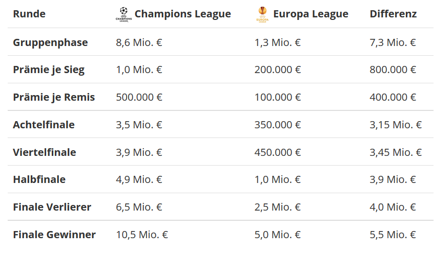 Die UEFA sollte die Prämien mal ein wenig anpassen und die el nicht so "verkommen" lassen.der Meinung bin ich aber schon seitdem der BVB in der CL spielt.