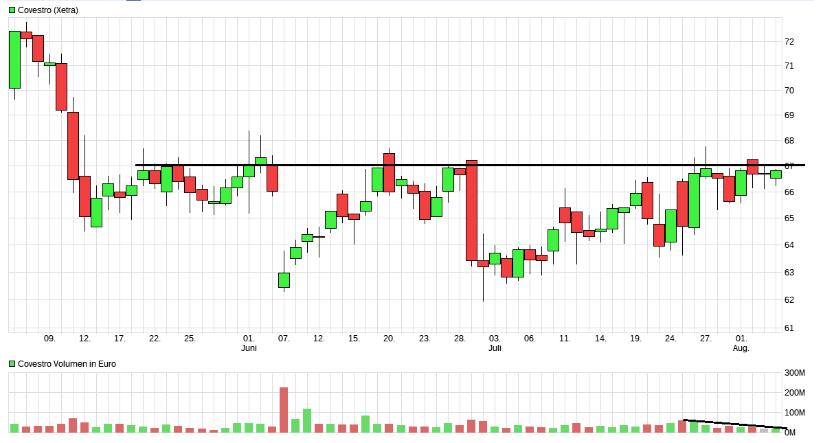 Mal schauen wie lange es dauert bis Covestro auf der Seitwärtsrange ausbricht....