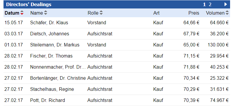 Seit Anfang des Jahres gab es immer mal wieder Käufe aus dem Vorstand oder Aufsichtsrat der Covestro.