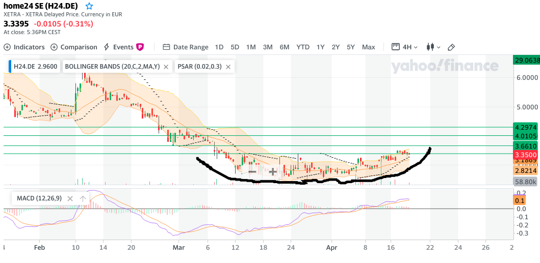 Bisher war Home24 mit der Umsetzung des Geschäftskonzepts beschäftigt. Wenn man sich die Geschichte ansieht, kann man einen Recht idealtypischen Verlauf sehen. Rocket Internet hat für seine E-Commerce Unternehmen einen Zeitraum von ca. 7 Jahren avisiert, bis diese diese profitabel arbeiten. Das passt, wenn man sich die Unternehmen ansieht Recht gut. Schade nur, dass man am Ende an die eigenen Visionen nicht mehr geglaubt hat, denn die Zeit der Ernte startet derzeit. Home24 hat den Laden inzwischen im Griff und wird in Zukunft durch den allgemeinen Markttrend kontinuierlich, überproportional zum Umsatz, steigende Gewinne ausweisen können. Dadurch sollten auch die derzeitigen Schnäppchenkurse endgültig der Vergangenheit angehören. Ich würde mich nicht wundern wenn der Kursverlauf über die nächsten zwei bis drei Jahre eine schöne Untertasse ausbildet die bis zu den alten Höchstkursen reichen wird.