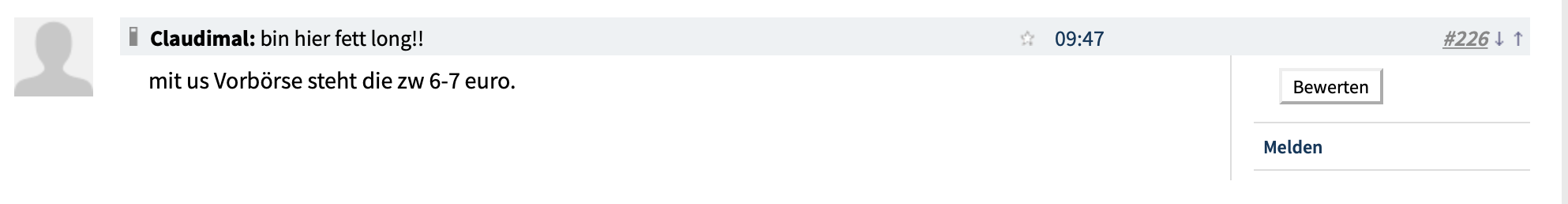 wieder hochgeht, selbst wenn der Gesamtmarkt aktuell recht freundlich ist. Ich selbst bin seit heute mit EK 5,40 drin