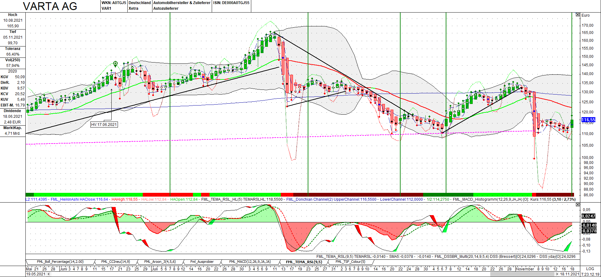 Varta hat aus meiner Sicht mehrere Dimensionen: generelle Stimmung / Sentiment (Hauptthread), Chart / Technische Analyse (hier), Research / Fundamental und Analysten / Medien.