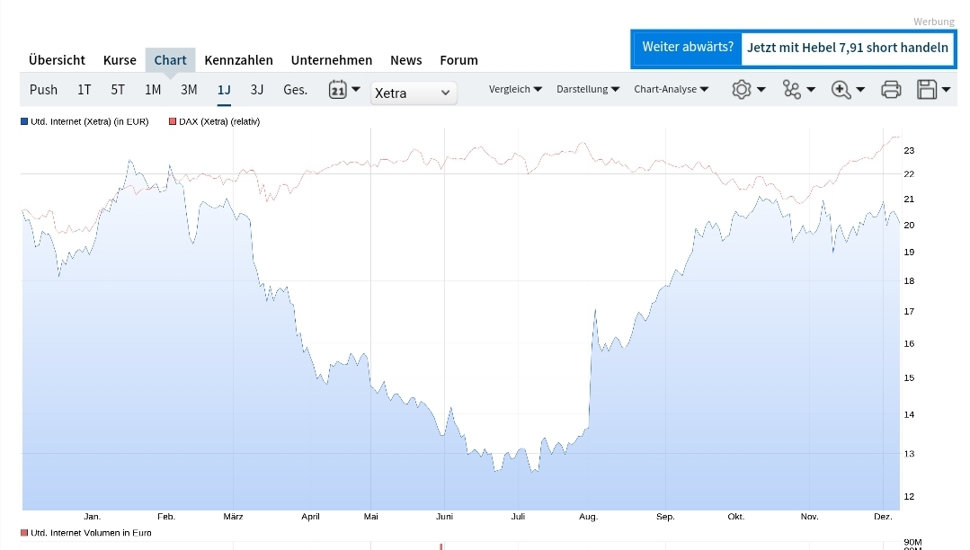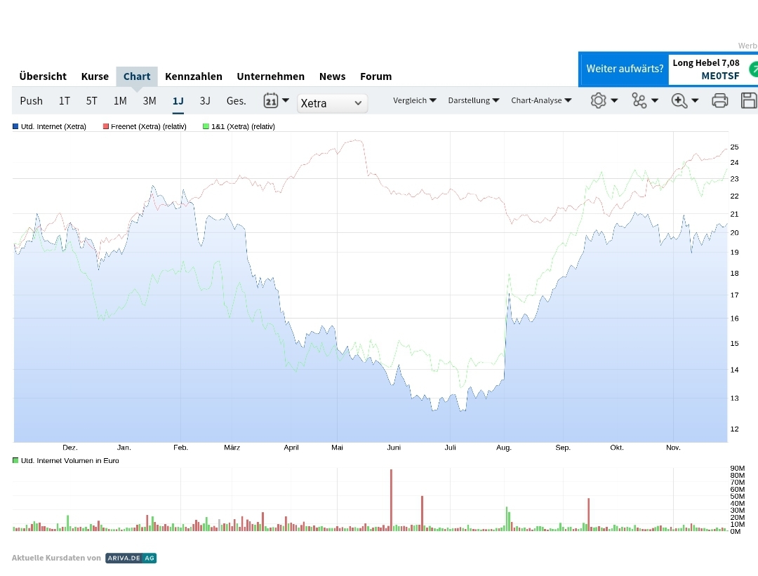 Positive Kursentwicklung ionos und 1&1 geht leider unbemerkt an UI vorbei.das sah, als alles südwärts ging,aber anders aus. Schade eigentlich,die Tage hätte man ein paar Cent gutmachen können.mit Jahresendrally war es hier wohl nichts.