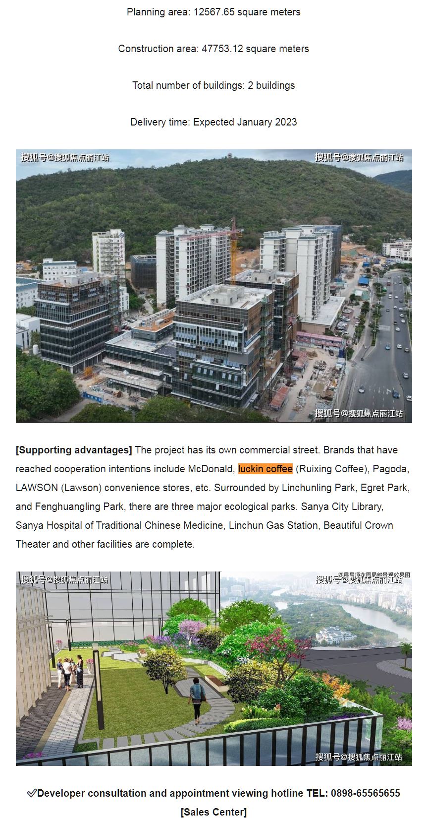 Bei dieser Überbauung wird Luckin im Verkaufsprospekt erwähnt. Werbetreibende, die für Luckin in gemischter Nutzung werben, Einkaufszentrum soll gebaut werden und Eigentumswohnungen verkaufen 4-15-2023