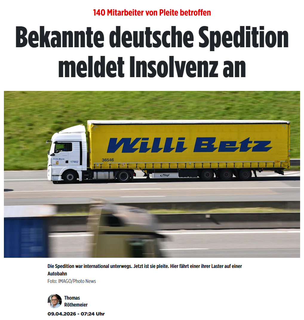 Bekannte deutsche Spedition BETZ meldet Insolvenz an