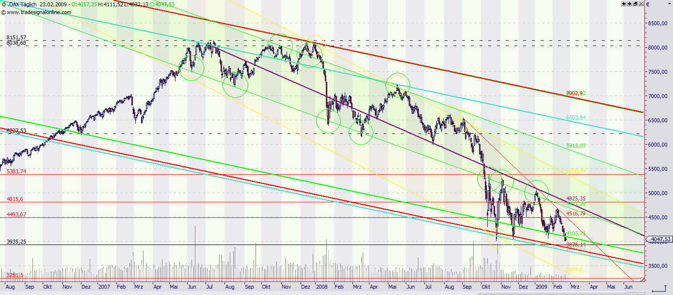 der Chart zeigt also an, daß der Dax sich kurzfristig erholt aber anschliessend wieder stark verliert und in Richtung der alten Tiefs von ca. 2100 absäuft. Zeitlicher Rahmen wäre wohl im Herbst/Winter 2009/2010?