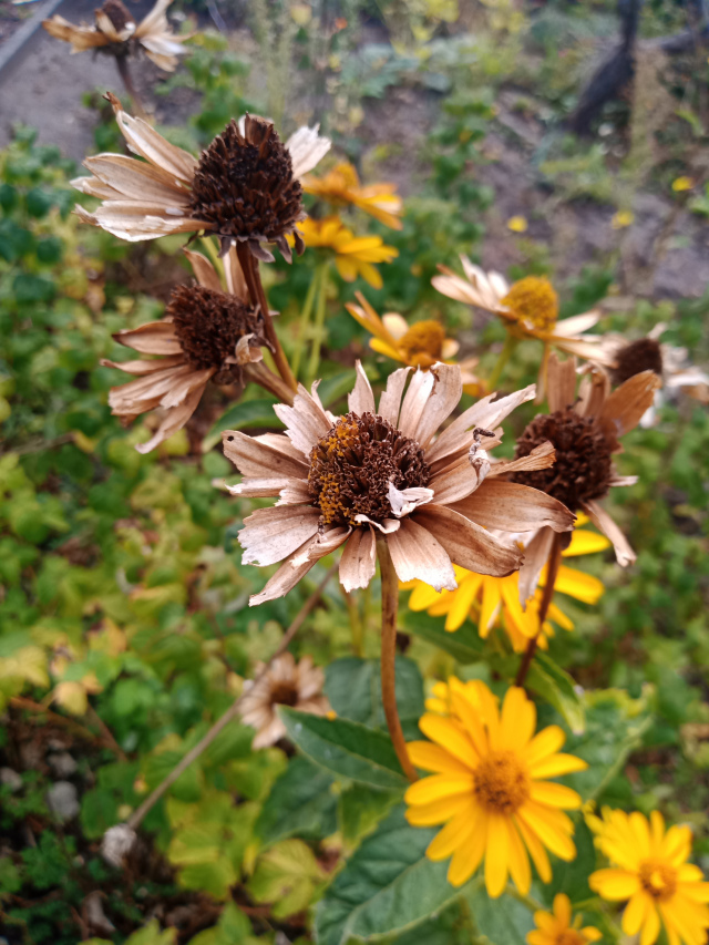 Und von den Blüten der Milchsterne haben wir somit auch nichts, die mussten wegen des Windes und ihrer langen Stängel zu ihrer eigenen Sicherheit ins Gewächshaus wandern