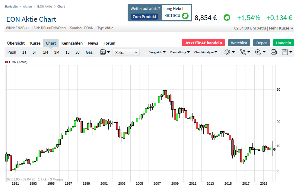 Was das alles mit EON zu tun hat? Nun, wahrscheinlich würde sie bei einem Crash wieder eher stabiler sein als andere Werte. Leider bei steigenden Märkten eher kein Outperformer bleiben. Aber daran haben wir uns ja gewöhnt.