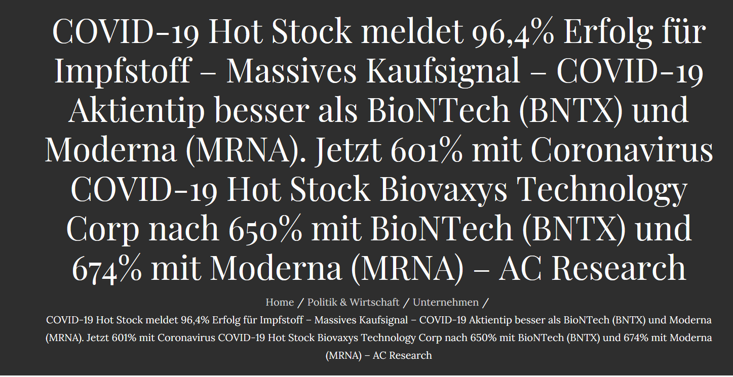 Bisher sieht alles danach aus, als beabsichtigt BIOV keine Zusammenarbeit auf Basis der gemeinsamen Geschäftsbeziehung, mit einem Pharma Konzern.