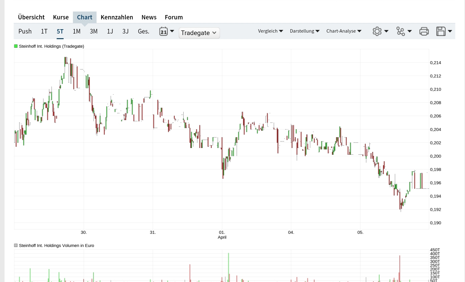5 Tage Chart Quelle: Ariva Charttool / Tradegate / 5 Tage Chart / Chandlesti­ck / linear