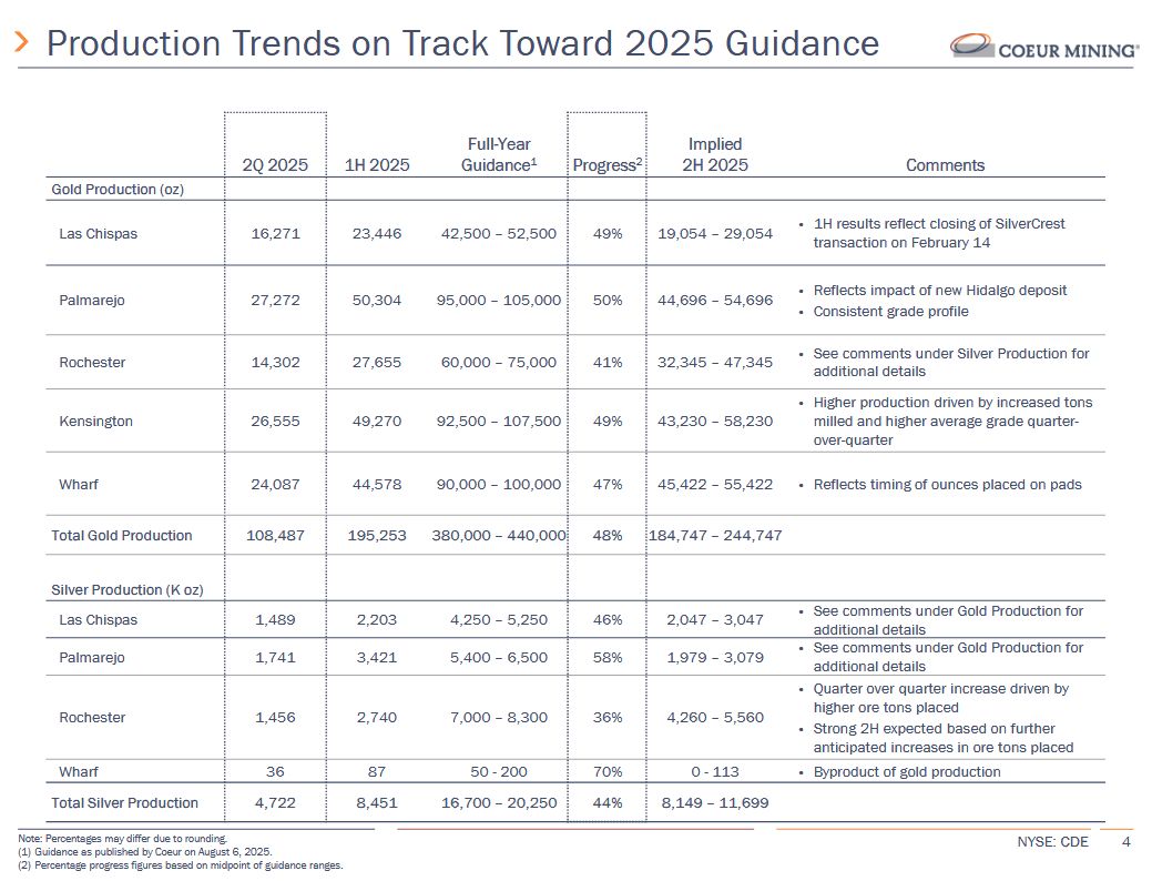 Coeur Mining (NYSE:CDE) hat am 7. August 2025 außergewöhnliche Q2 2025-Ergebnisse vorgelegt und dabei Rekordwerte in mehreren Finanzkennzahlen erzielt. Der Edelmetallproduzent profitierte von höheren Gold- und Silberpreisen, der erfolgreichen Integration der Las Chispas-Akquisition und verbesserten operativen Effizienz in der erweiterten Rochester-Mine.
