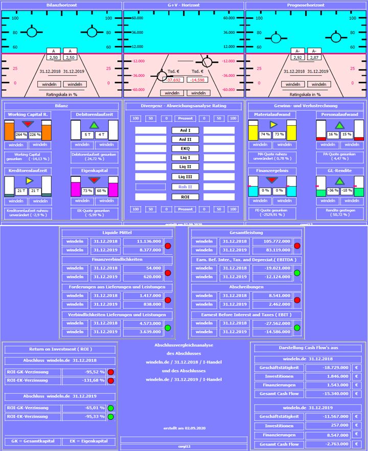 Bilanzratingnote: Die Bilanzratingnote hat sich minimal von 2,92 auf 2,87 verbessert. Welche Faktoren (Kennzahlen) dazu beigetragen haben, kann an der Divergenzdarstellung abgelesen werden.
